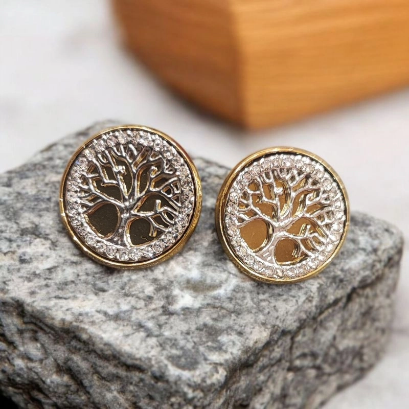 Δώσε λάμψη και κομψότητα στο στυλ σου με αυτά τα ατσάλινα σκουλαρίκια Δέντρο Ζωής σε εντυπωσιακή χρυσή απόχρωση. Το Δέντρο Ζωής συμβολίζει τη δύναμη, την αρμονία και την ευτυχία, κάνοντάς τα το ιδανικό δώρο για σένα ή για τα αγαπημένα σου πρόσωπα.