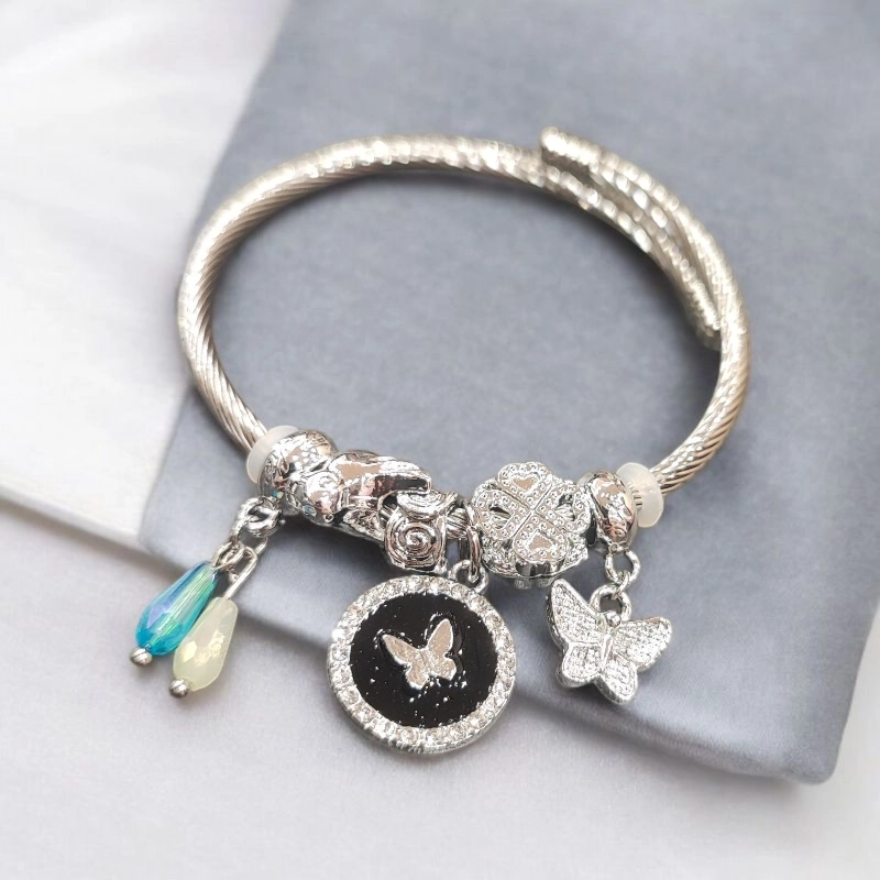 Δώσε λάμψη και κομψότητα στο στυλ σου με το ατσάλινο βραχιόλι-βέργα με κρεμαστές πεταλούδες από το xrxgifts.