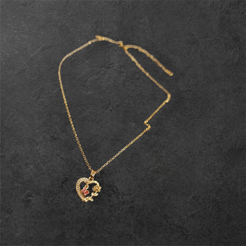 Ατσάλινο κολιέ καρδιά με τριαντάφυλλο και πεταλούδα σε χρυσή απόχρωση. Ένα μοναδικό κόσμημα που συνδυάζει τη ρομαντική καρδιά με το διαχρονικό τριαντάφυλλο και την κομψότητα της πεταλούδας, δημιουργώντας ένα ιδιαίτερο αποτέλεσμα που ταιριάζει σε κάθε περίσταση. Κατασκευασμένο από υποαλλεργικό ανοξείδωτο ατσάλι, ιδανικό για καθημερινή χρήση χωρίς να μαυρίζει ή να προκαλεί ερεθισμούς. Ένα υπέροχο δώρο για γυναίκες που αγαπούν τα ξεχωριστά κοσμήματα.